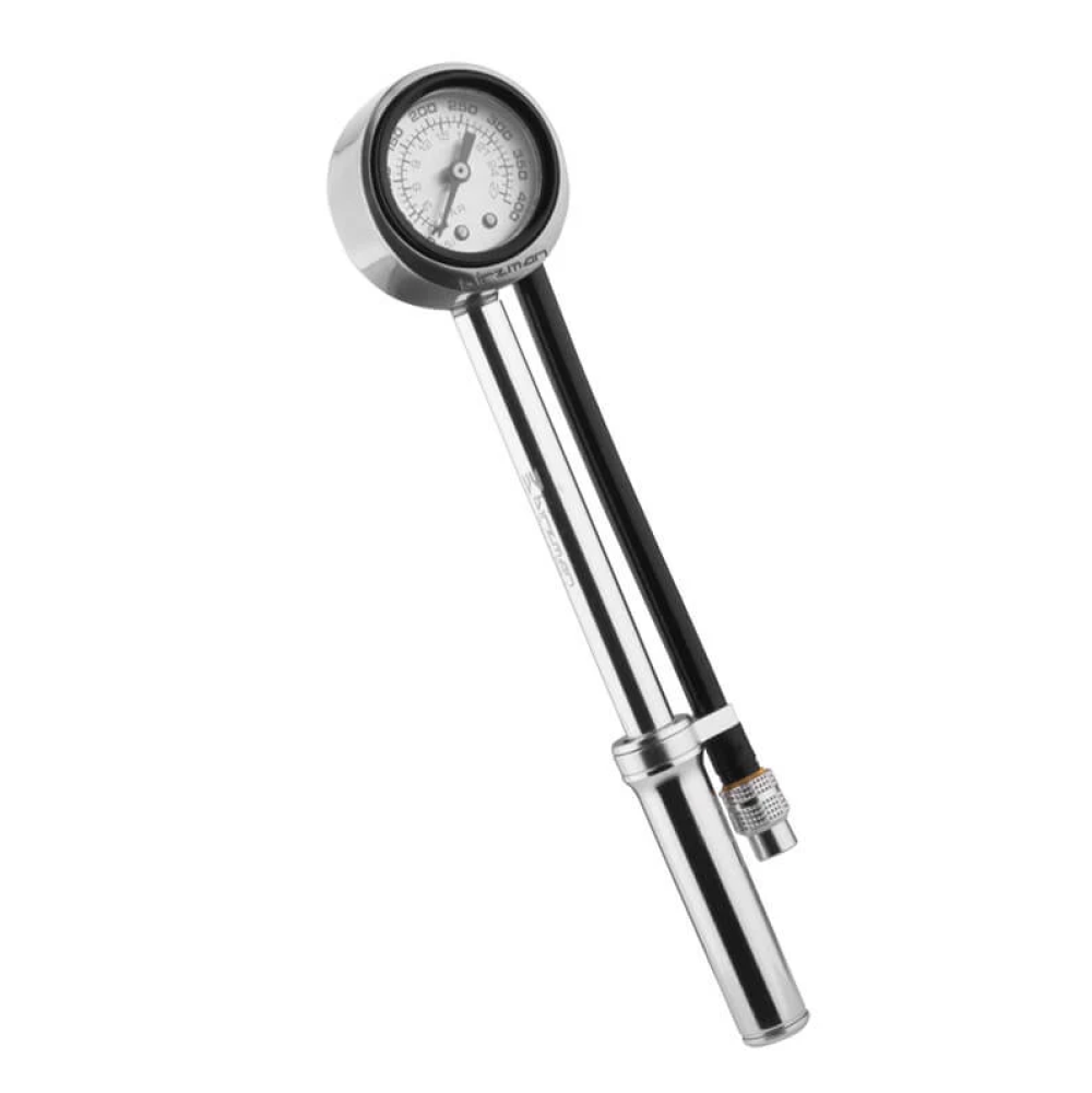 Manómetro Preciso: Incorpora un manómetro (medidor de presión) analógico, claro y fácil de leer, que permite visualizar con exactitud la presión del aire. El rango de medición está optimizado para las altas presiones que manejan las suspensiones, llegando comúnmente hasta 300 psi (aproximadamente 20 bar).