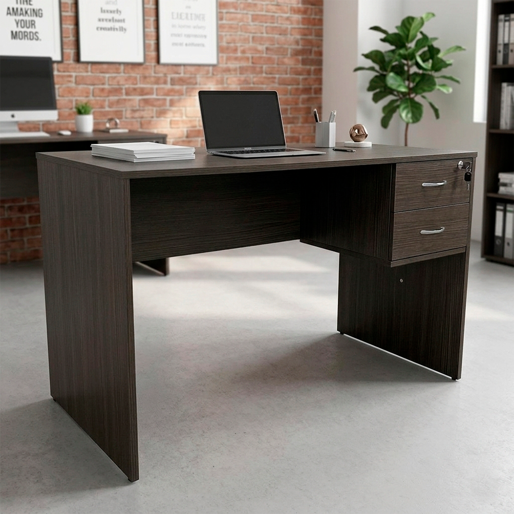 Diseñado para utilizar de forma eficiente el espacio, este escritorio moderno es la opción ideal para cualquier oficina o área de trabajo en casa. Con unas dimensiones de 75 cm de alto, 60 cm de profundidad y 120 cm de largo, se adapta perfectamente a entornos reducidos sin sacrificar la funcionalidad.