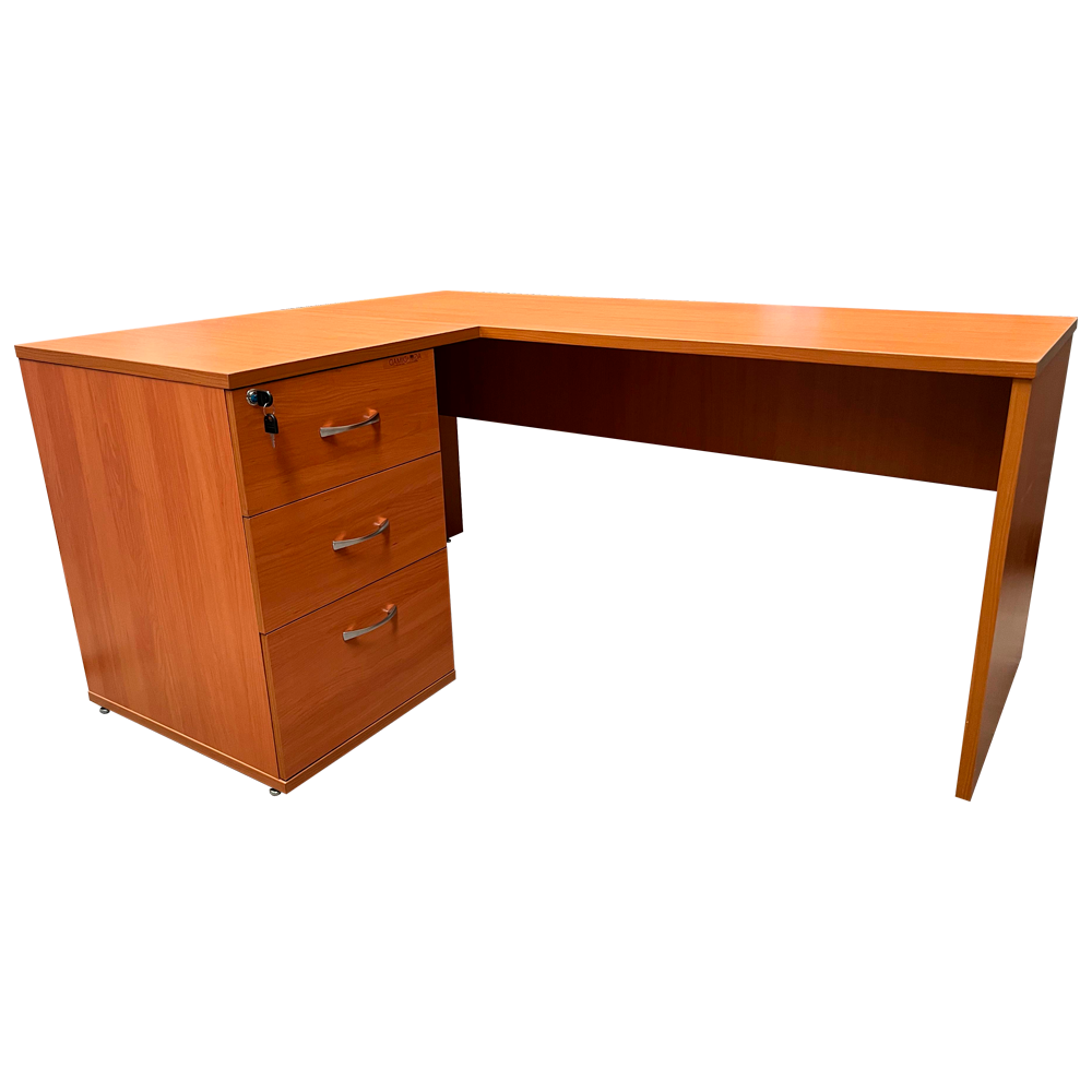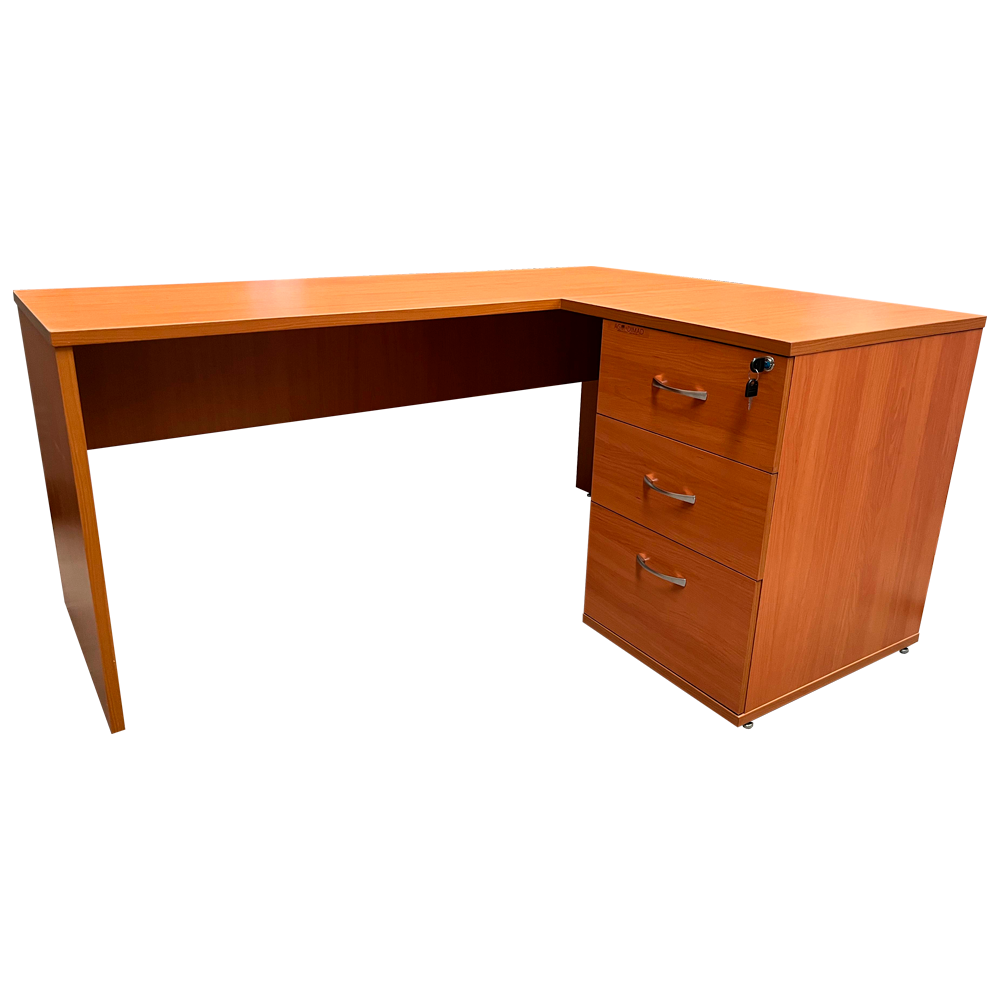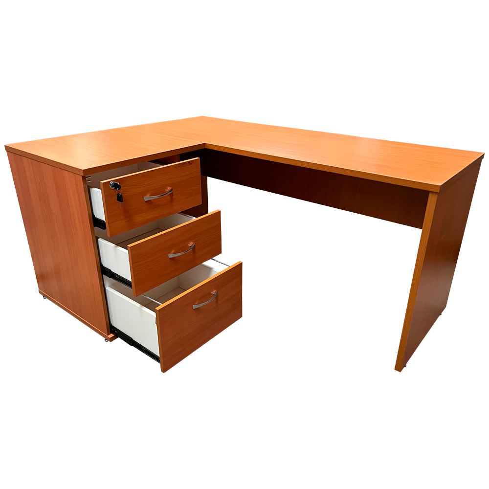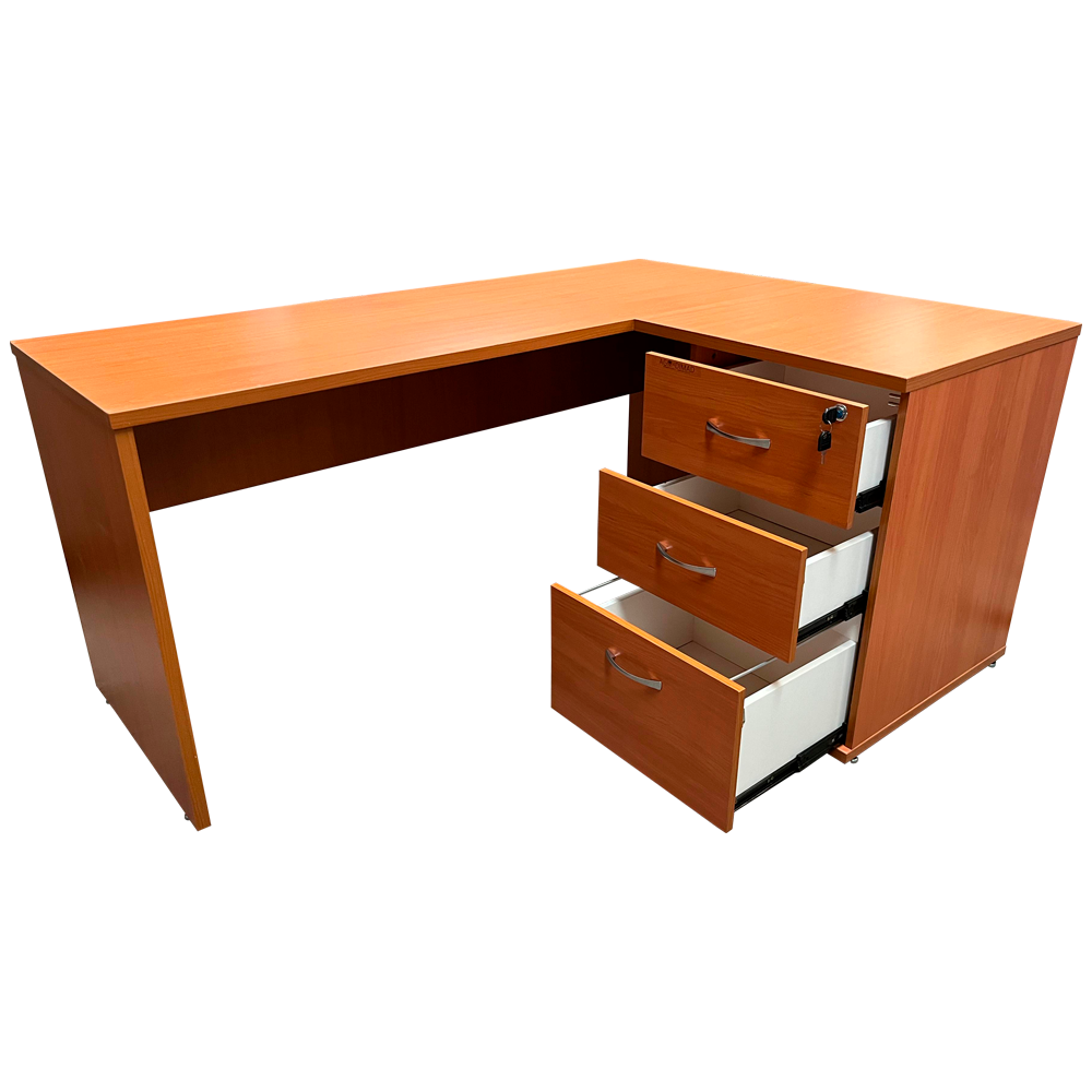 •    Configuración: Escritorio en forma de L con cajonera pedestal de 3 cajones