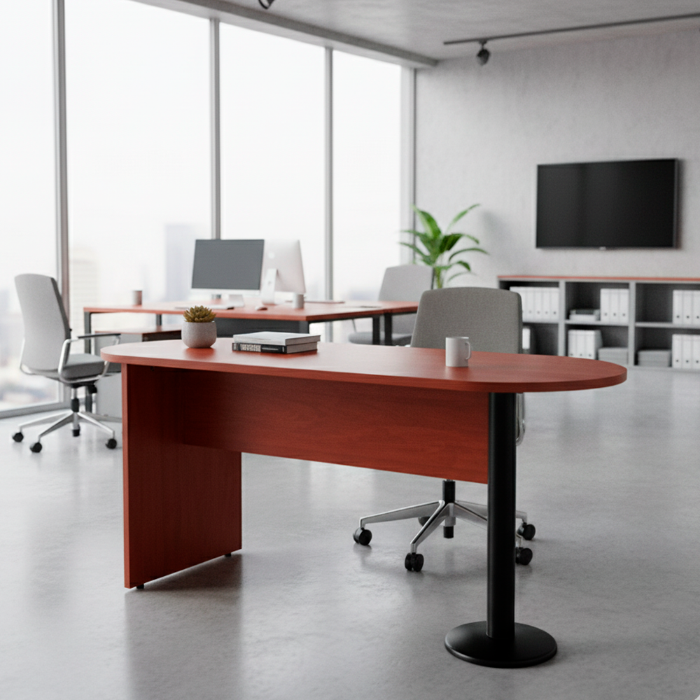 o Diseño con un lado ortogonal y otro semicircular, ideal para diferentes configuraciones de espacio