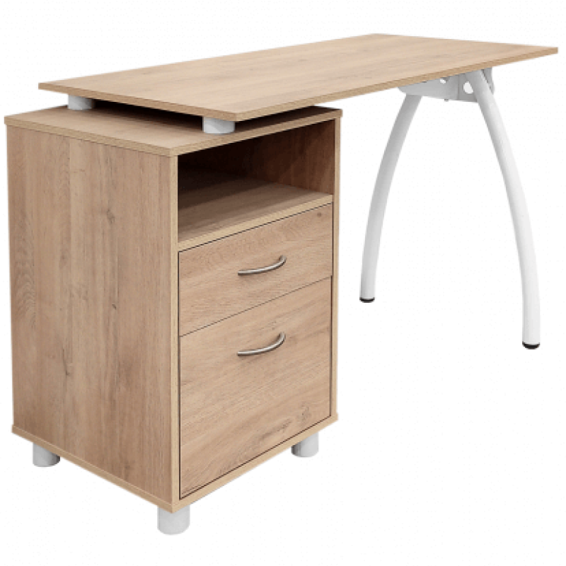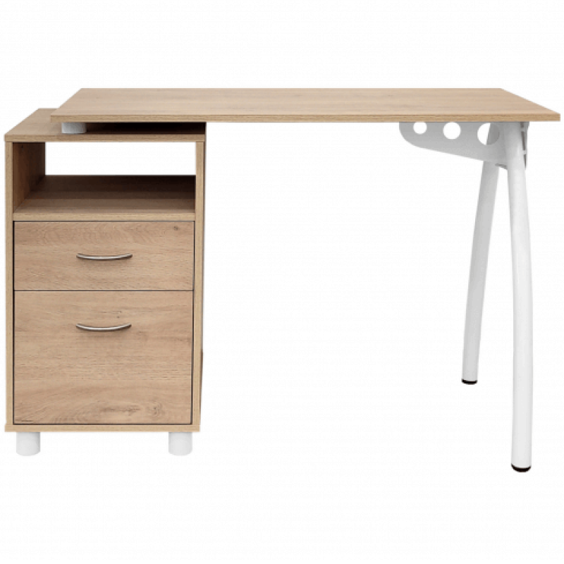 Este escritorio con cajonera lateral es una opción muy práctica y versátil para tu espacio de trabajo o estudio. Está fabricado en melamina de 15 mm con cantos en PVC, lo que garantiza resistencia y durabilidad. La cajonera lateral, que puede colocarse a la izquierda o a la derecha según el armado, cuenta con dos cajones con tiradores metálicos, brindando espacio adicional para almacenamiento. Las patas metálicas, fabricadas en tubo de 1 ½” y escuadra en acero esmaltado al horno en color blanco, le dan estabilidad y un acabado moderno. Además, su sistema de unión con tarugos, Minifix, adhesivo, pernos y tuercas facilita el armado, que es de dificultad baja. Viene desarmado y embalado en una caja de cartón, listo para que puedas armarlo fácilmente en casa.