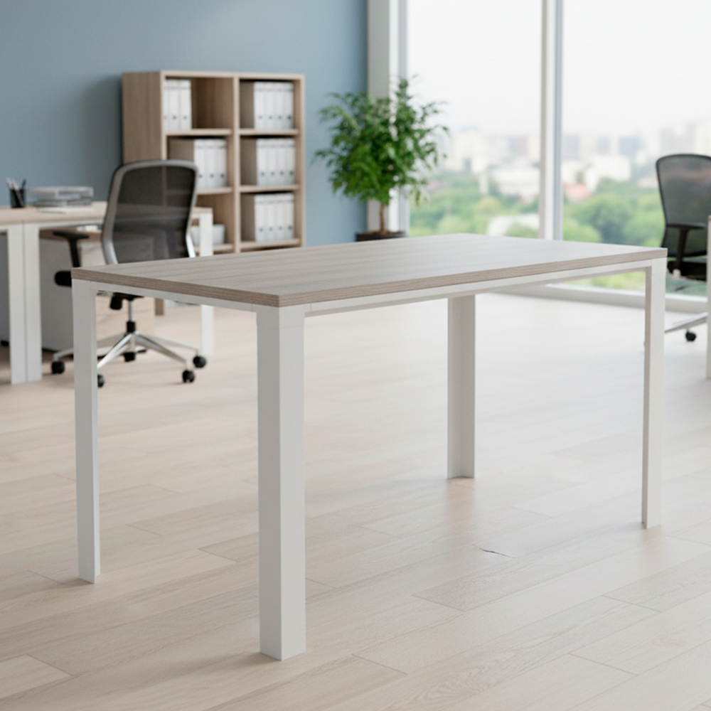 El escritorio Venecia de la línea Bench es una pieza moderna y funcional diseñada para optimizar espacios de trabajo en oficinas, estudios o ambientes corporativos. Con una cubierta recta de melamina de 24 mm de espesor, ofrece durabilidad, resistencia y un acabado estético de alta calidad. La estructura en aluminio pintado de blanco, en perfil tipo corchete de 60x30 mm, proporciona estabilidad y un diseño ligero pero robusto. Disponible en una medida de 90 cm, este escritorio combina estilo contemporáneo con practicidad, facilitando un entorno de trabajo ordenado y eficiente. Su acabado en melamina y PVC en los tapacantos aseguran un mantenimiento sencillo y una apariencia impecable a lo largo del tiempo.