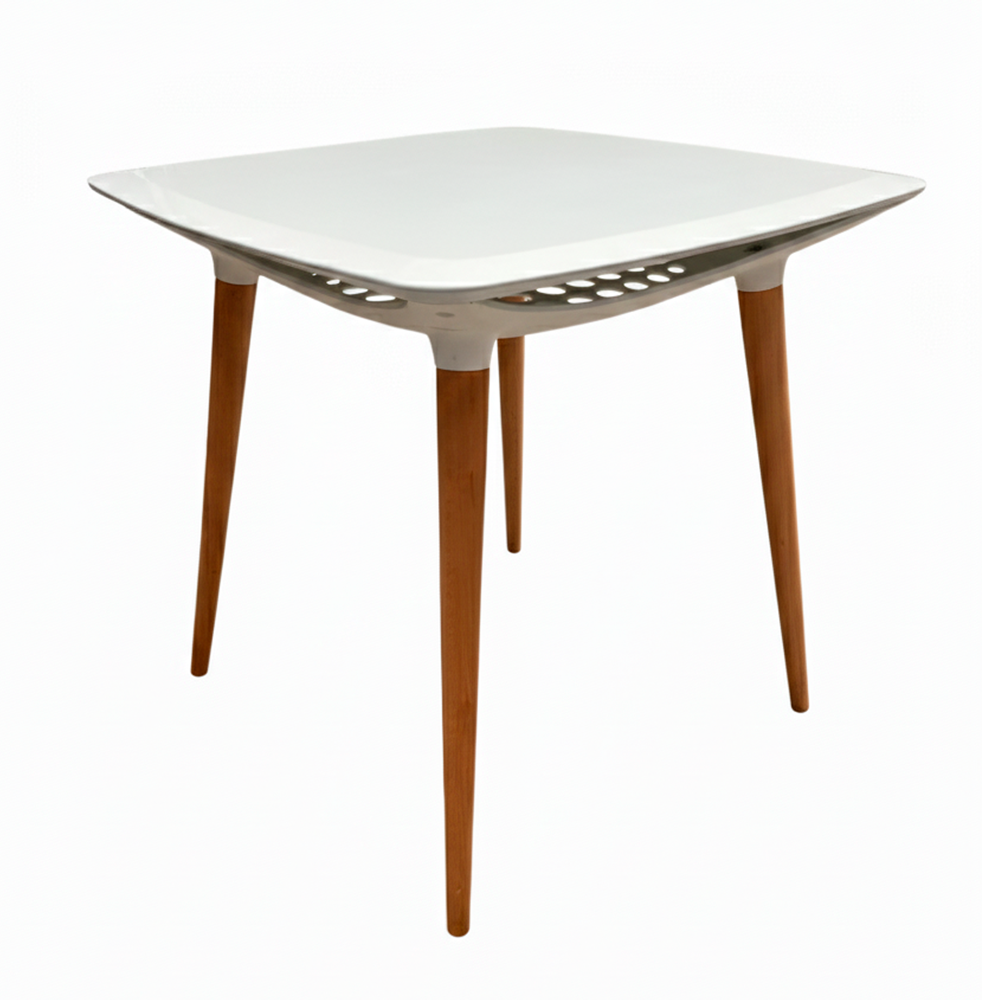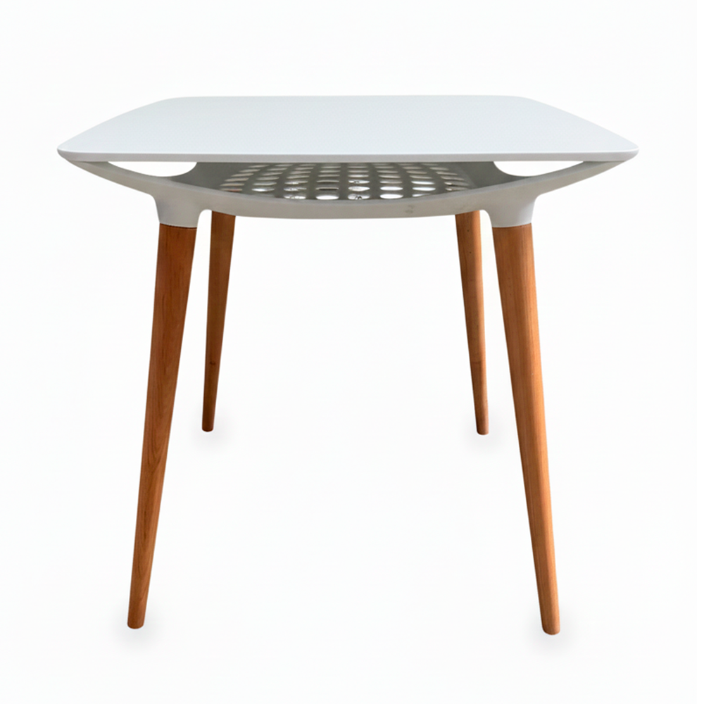 Cubierta: Presenta una superficie lisa y de fácil limpieza, resistente a manchas. El diseño incluye un reborde inferior decorativo con perforaciones circulares que le dan un toque futurista y ligero.