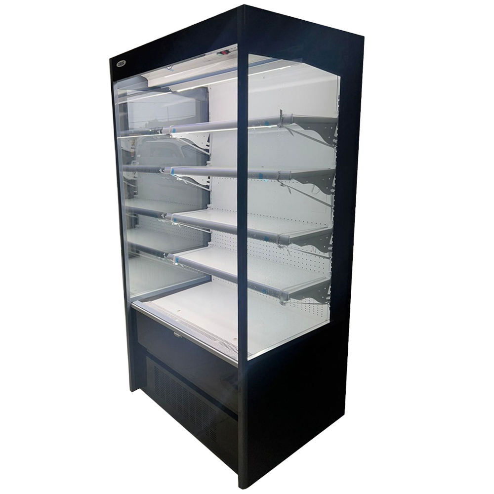 Mural autoservicio 100 cm, 4 niveles de estantes, iluminación en visera, deshielo automático, 220v/50Hz, refrigerante R404A, control de temperatura.